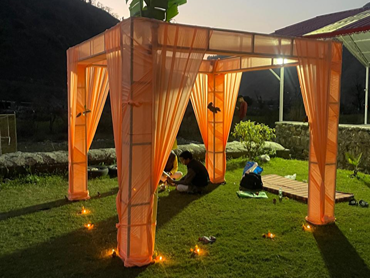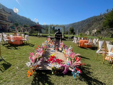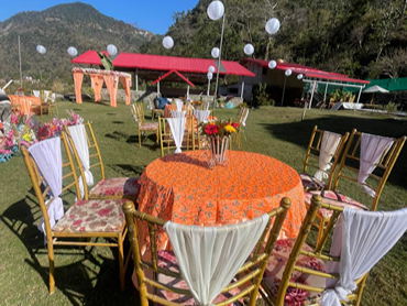 At “THE NEEDAM” great care has been taken not to ruin the area's natural attractiveness, which is surrounded by mountains, streams and various walking paths. Relax on your private patios and listen to the sound of water and breathe in the pure air enjoying the quality accommodation and unsurpassed hospitality, with a meal-plan second to none. The “पहाड़ी VIBES“ restaurant allows guests to dine in style overlooking fabulous landscapes of the valley. Tea, Coffee and Snacks are available all day in the resort. The elegant ambience and beautiful lawns make it ideal for corporate groups and family events.
